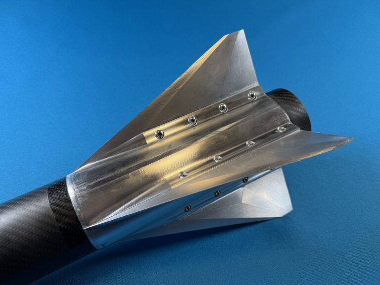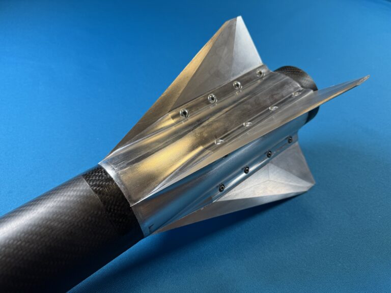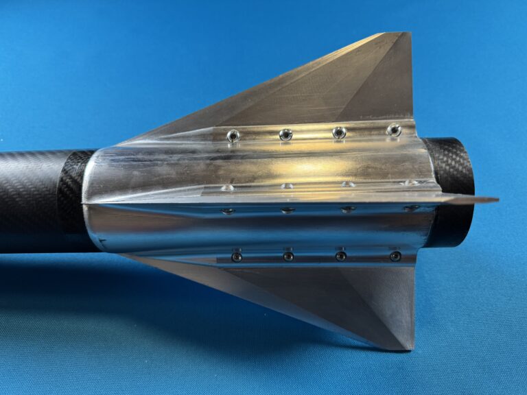 Designed for a 3-inch minimum diameter rocket – this modular fin assembly (fin can) can be bolted onto a rocket airframe with a max outer diameter of 3.130″.